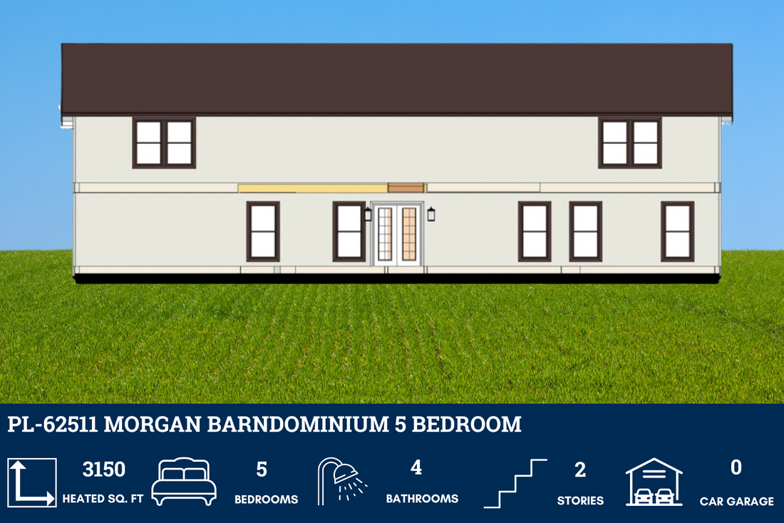 The PL-62511 Morgan Barndominium House Plan, with 3,150 heated sq ft, embraces a well-designed layout.