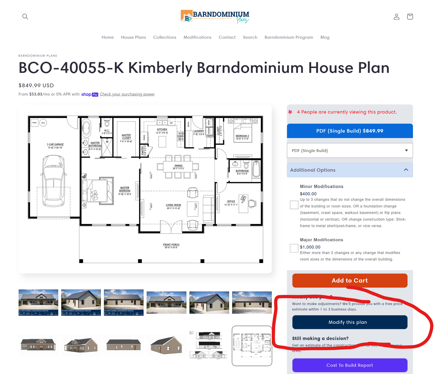 Found a plan you love, but need some modifications? On the product page, below "Add To Cart" you'll find a button that says "Modify This Plan". Fill out your information there!