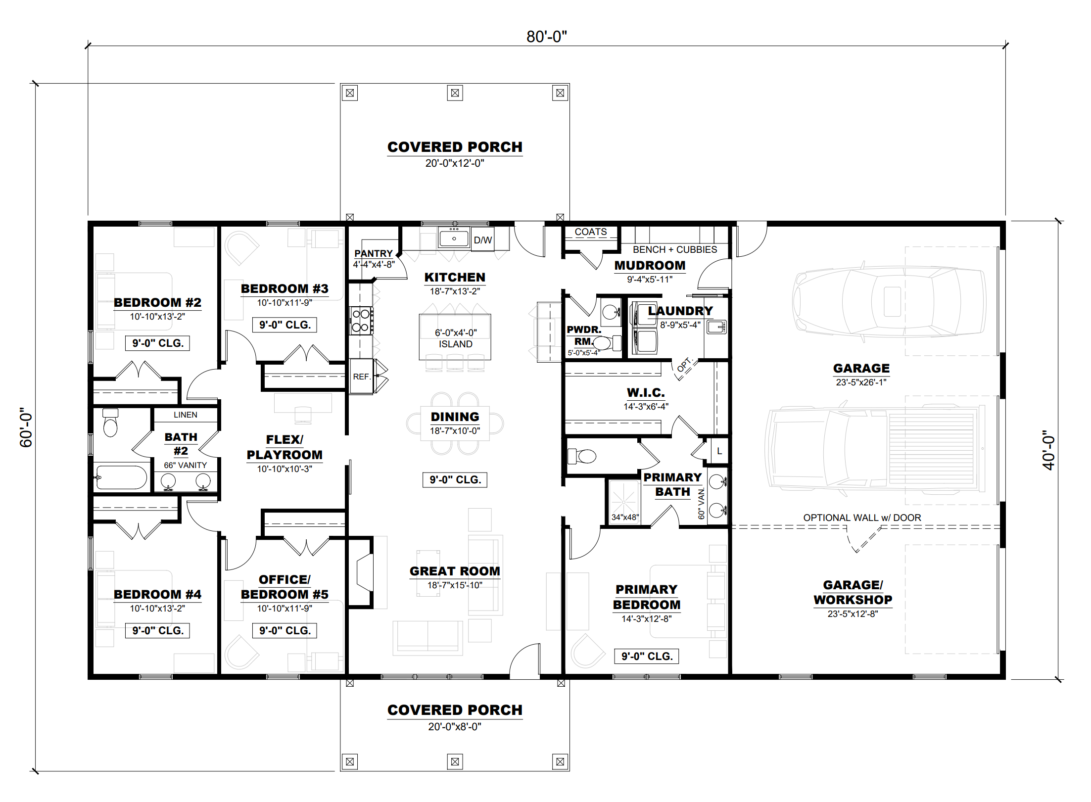 For more barndominium floor plans, check out our complete collection of 5-bedroom barndominium floor plans.