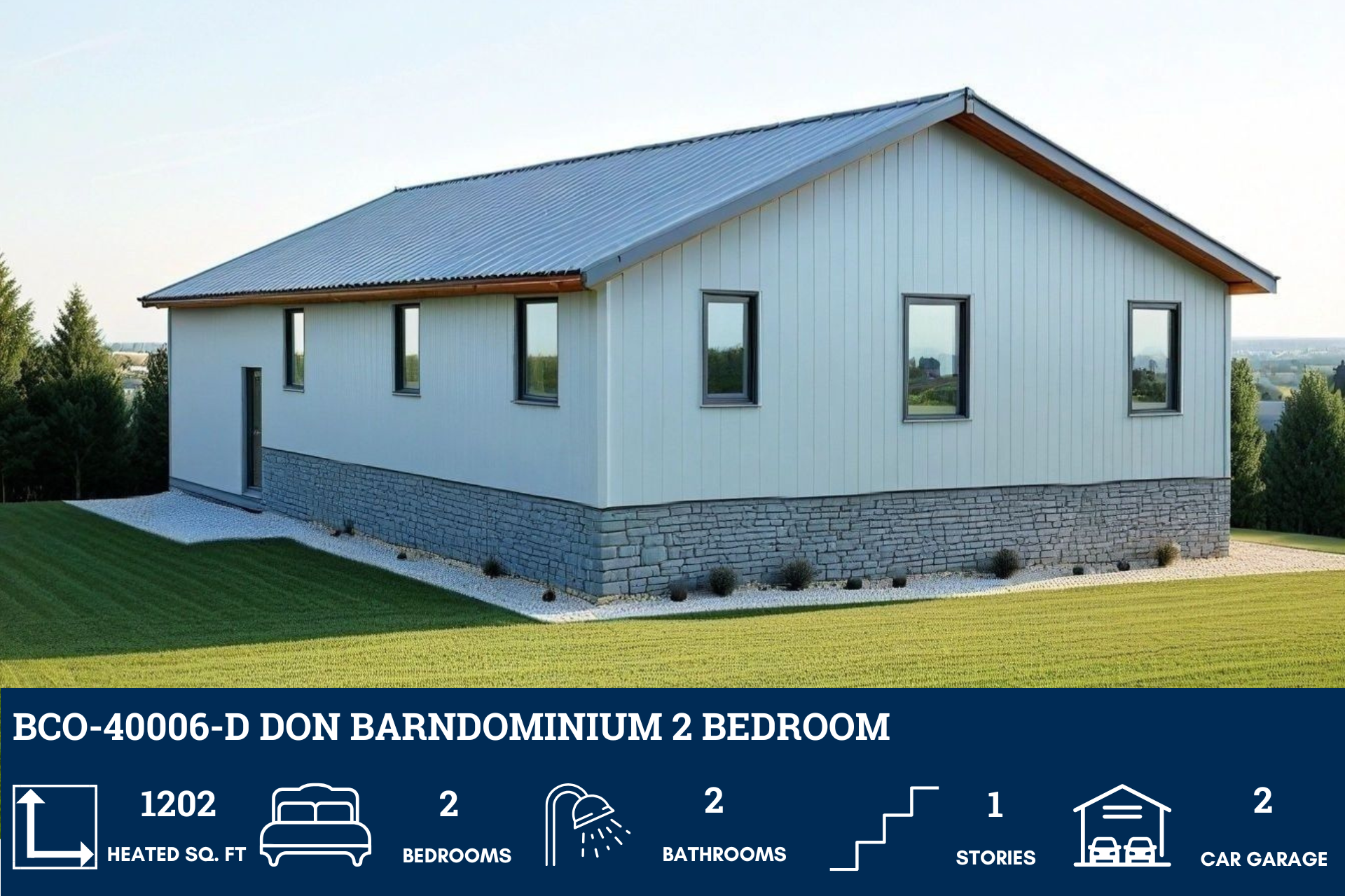 For more barndominium floor plans, check out our complete collection of 2-bedroom barndominium floor plans.