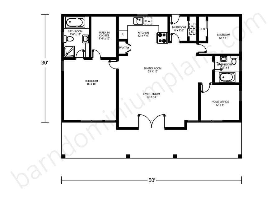 For more barndominium floor plans, check out our complete collection of 2-bedroom barndominium floor plans.