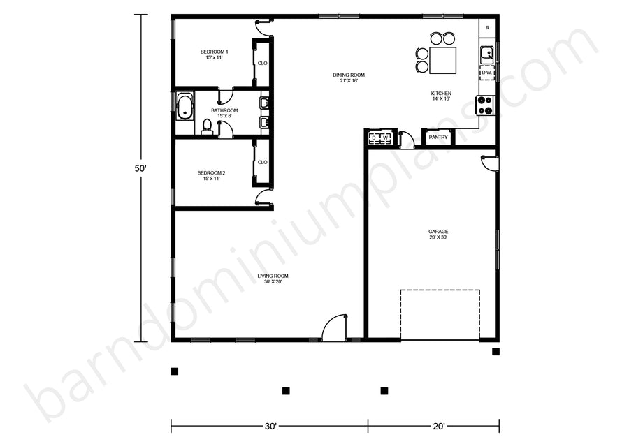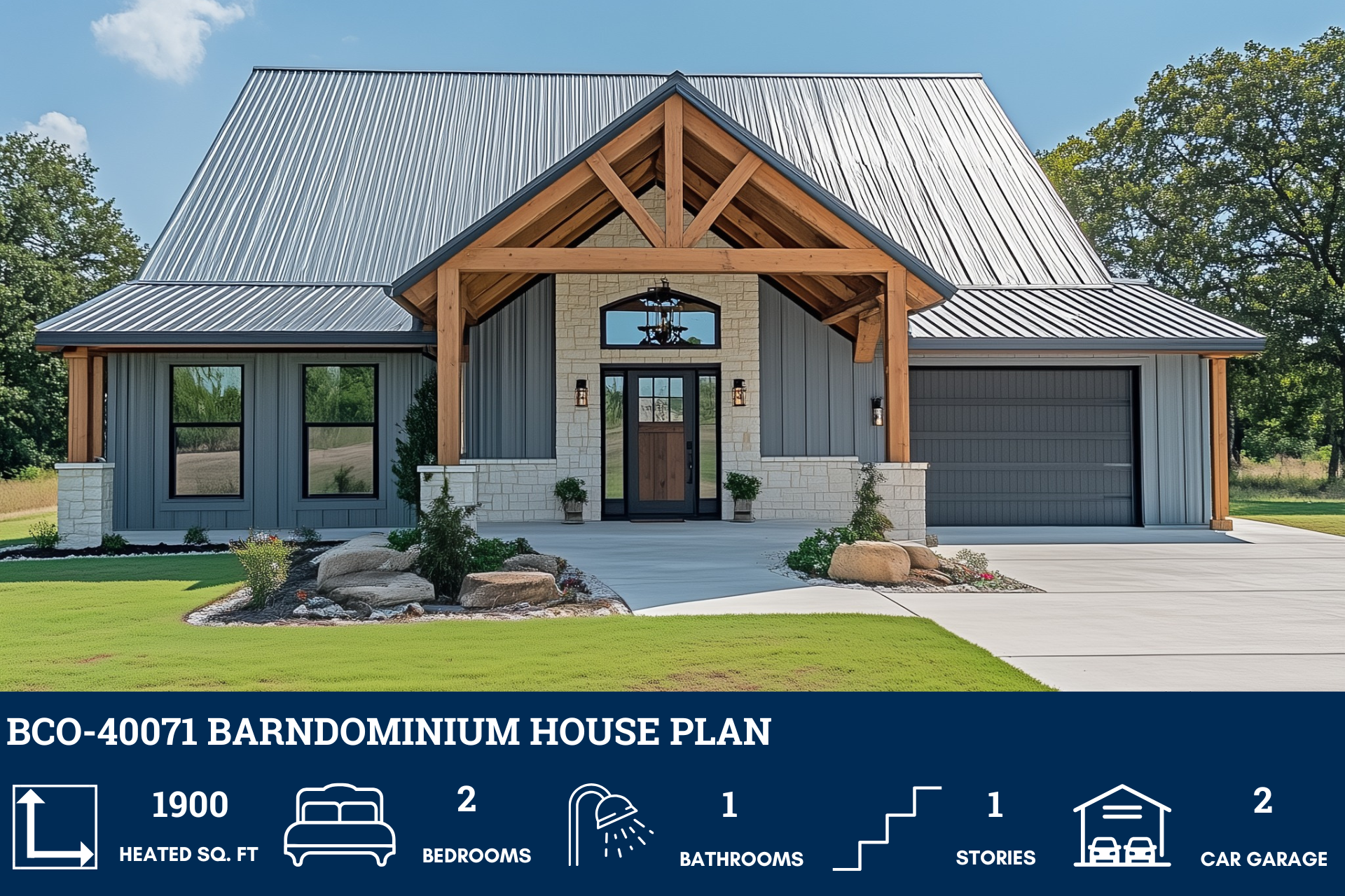 For more barndominium floor plans, check out our complete collection of 2-bedroom barndominium floor plans.