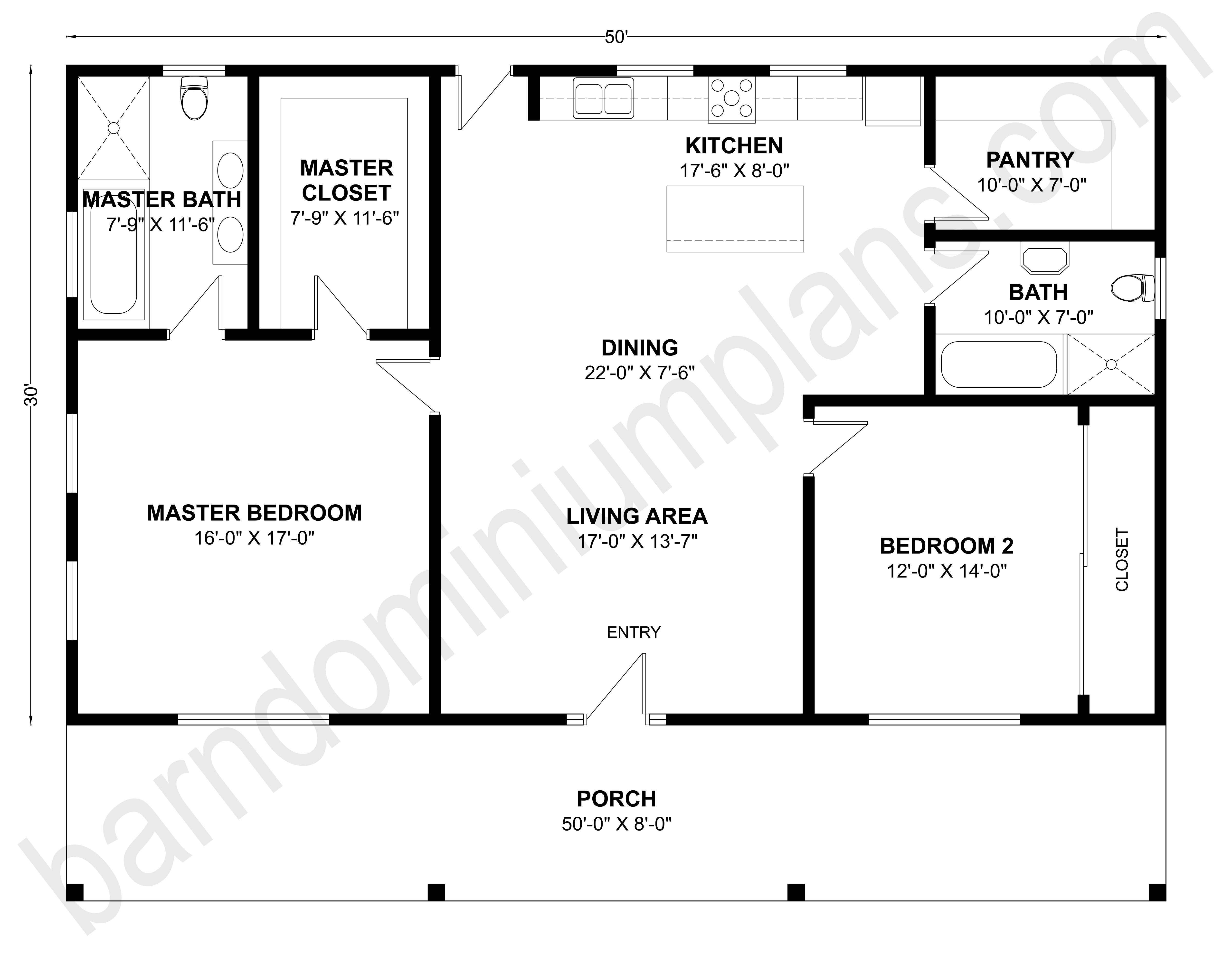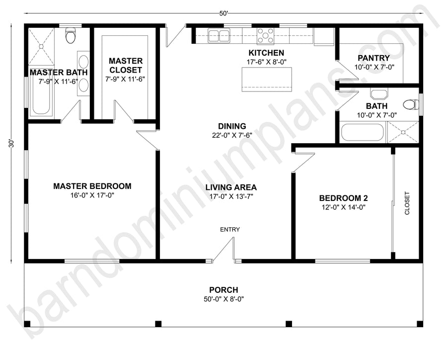 For more barndominium floor plans, check out our complete collection of 2-bedroom barndominium floor plans.