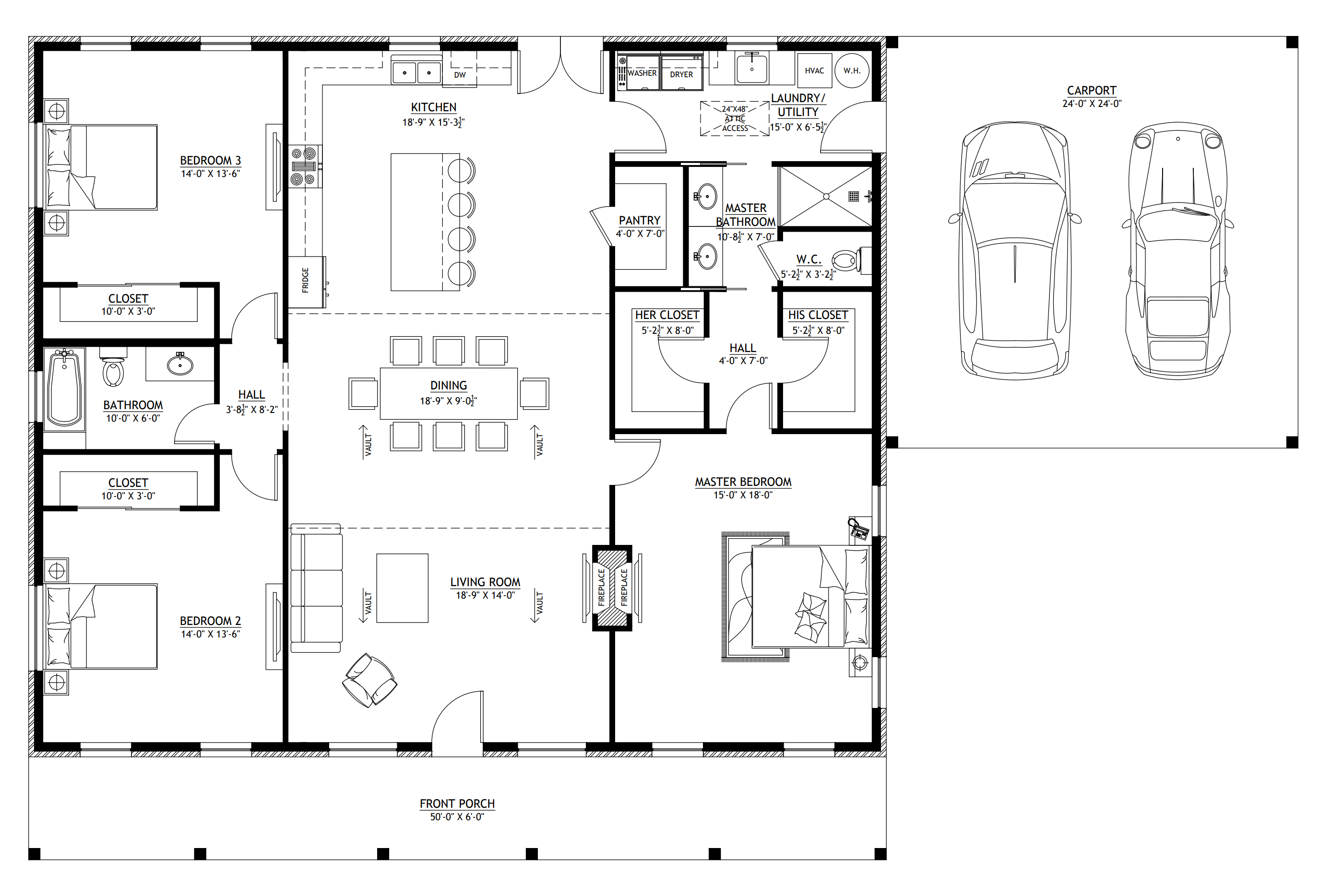 Porch 300 SF, Carport 576 SF = TOTAL 876 SF