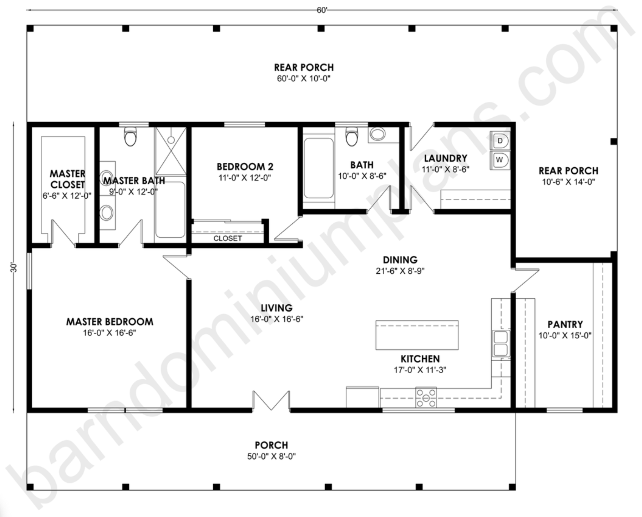 For more barndominium floor plans, check out our complete collection of 2-bedroom barndominium floor plans.