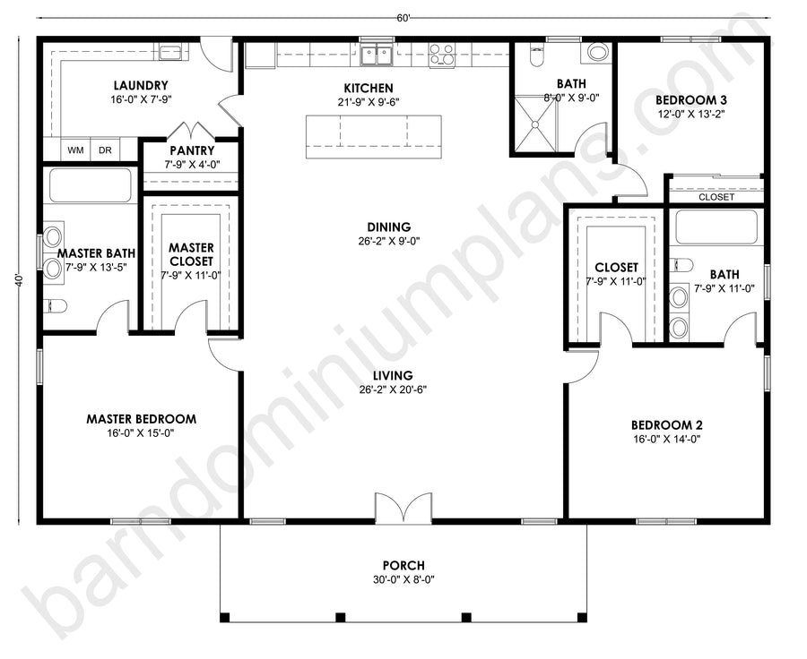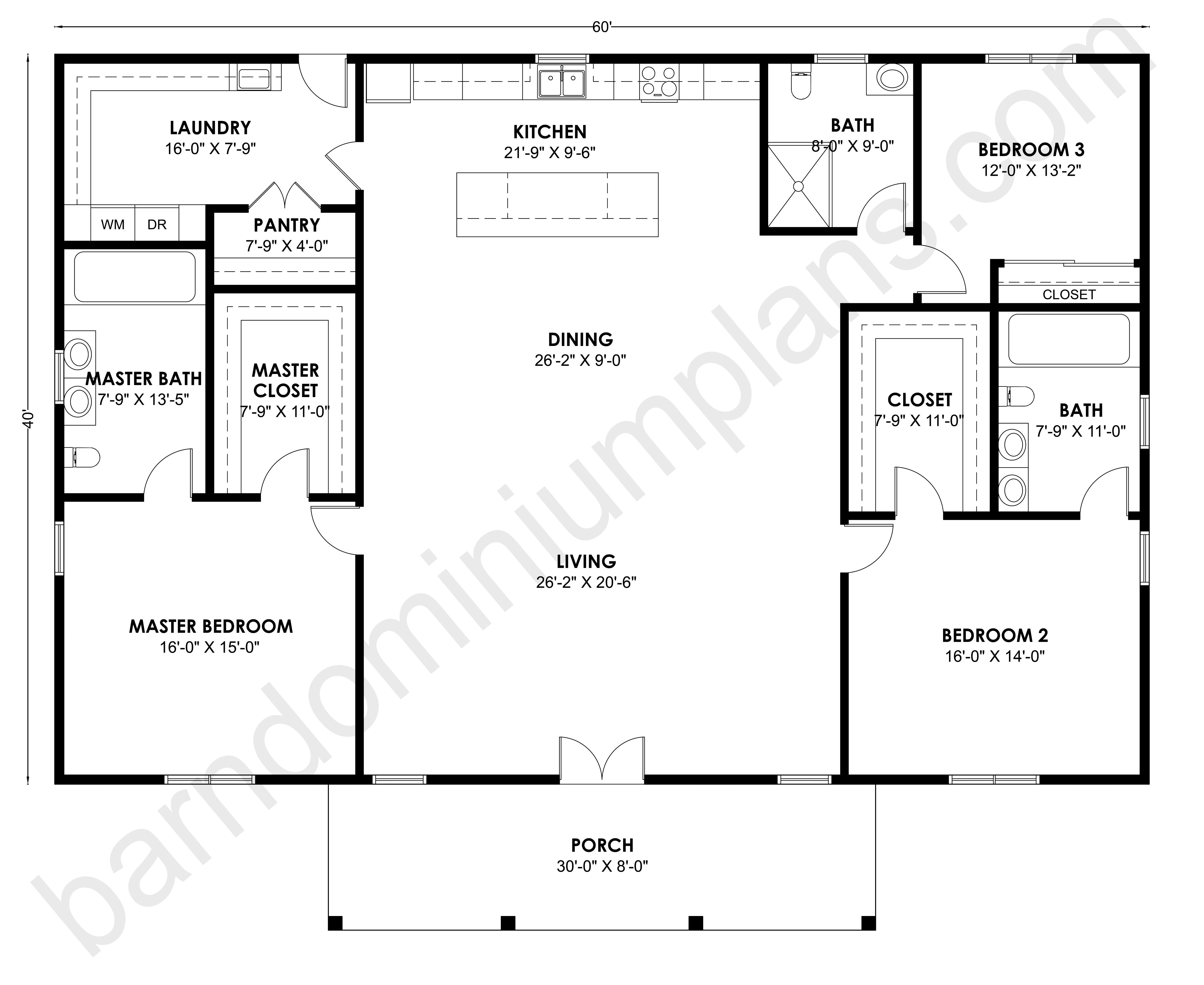 For more barndominium floor plans, check out our complete collection of 3-bedroom barndominium floor plans.