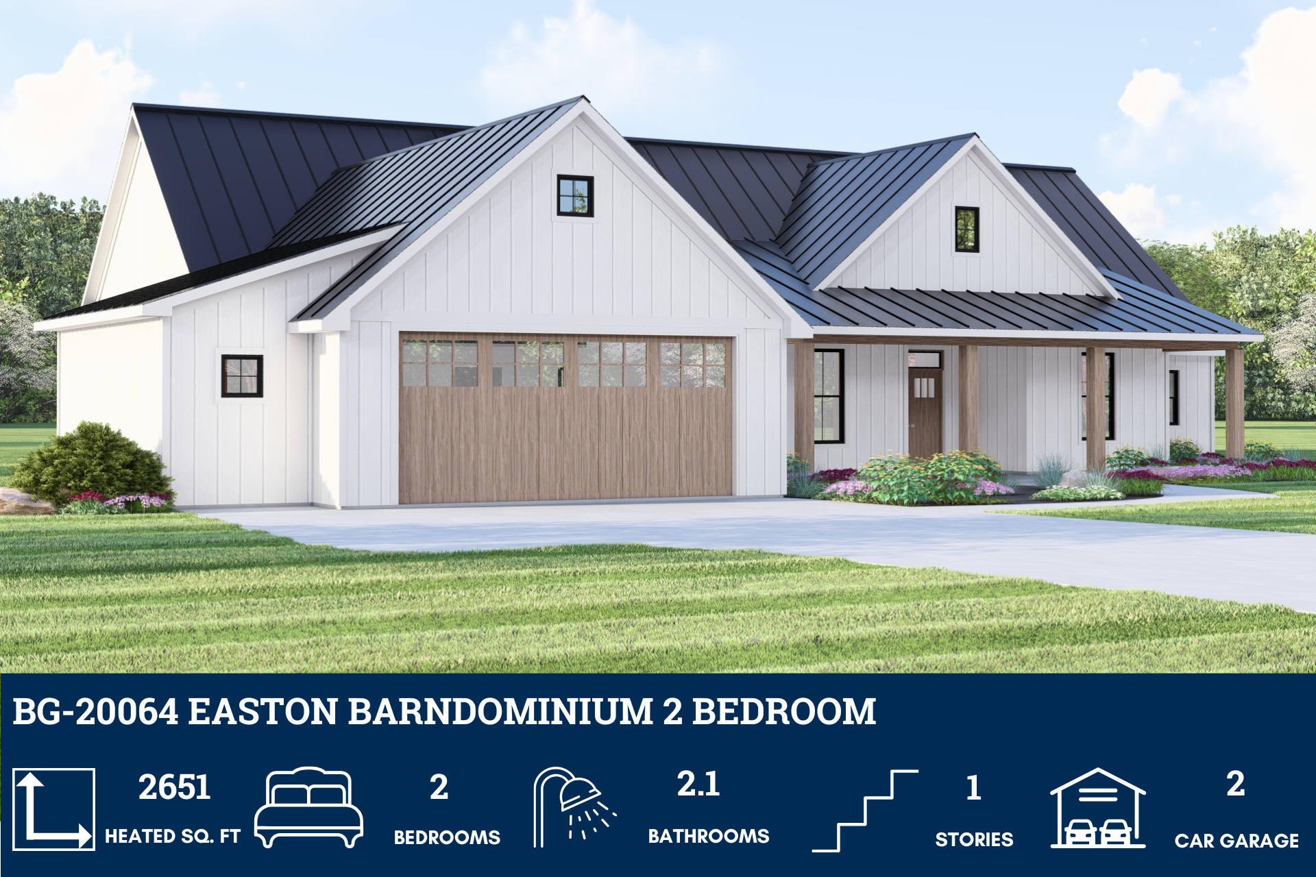 For more barndominium floor plans, check out our complete collection of 2-bedroom barndominium floor plans.