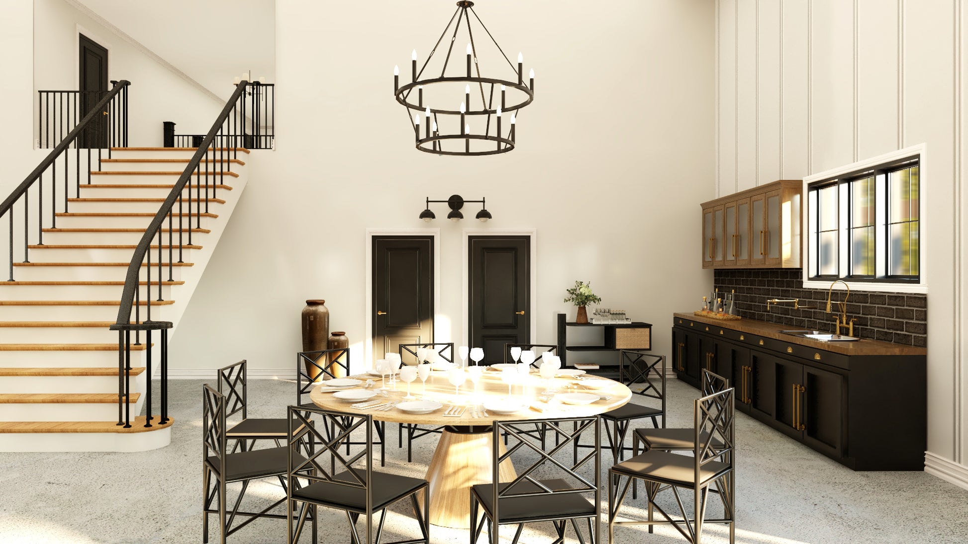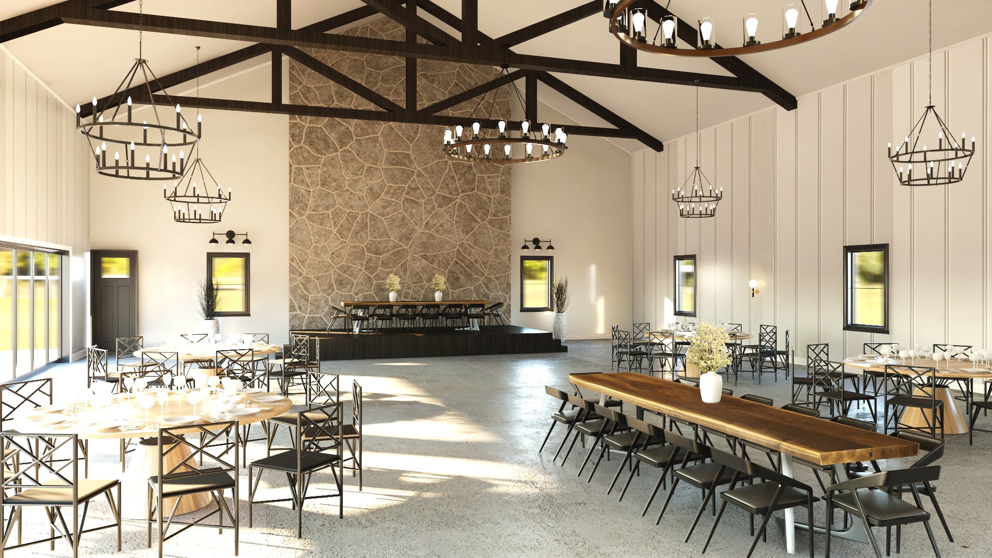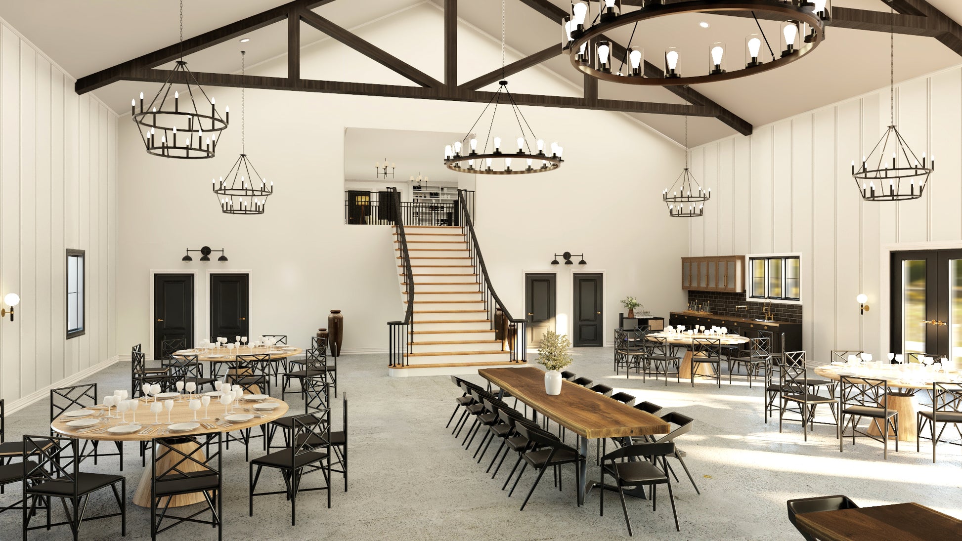 - Two kitchens serve distinct purposes: a full kitchen in the heated living area for daily use, and a kitchenette in the event center for streamlined hosting and prep.