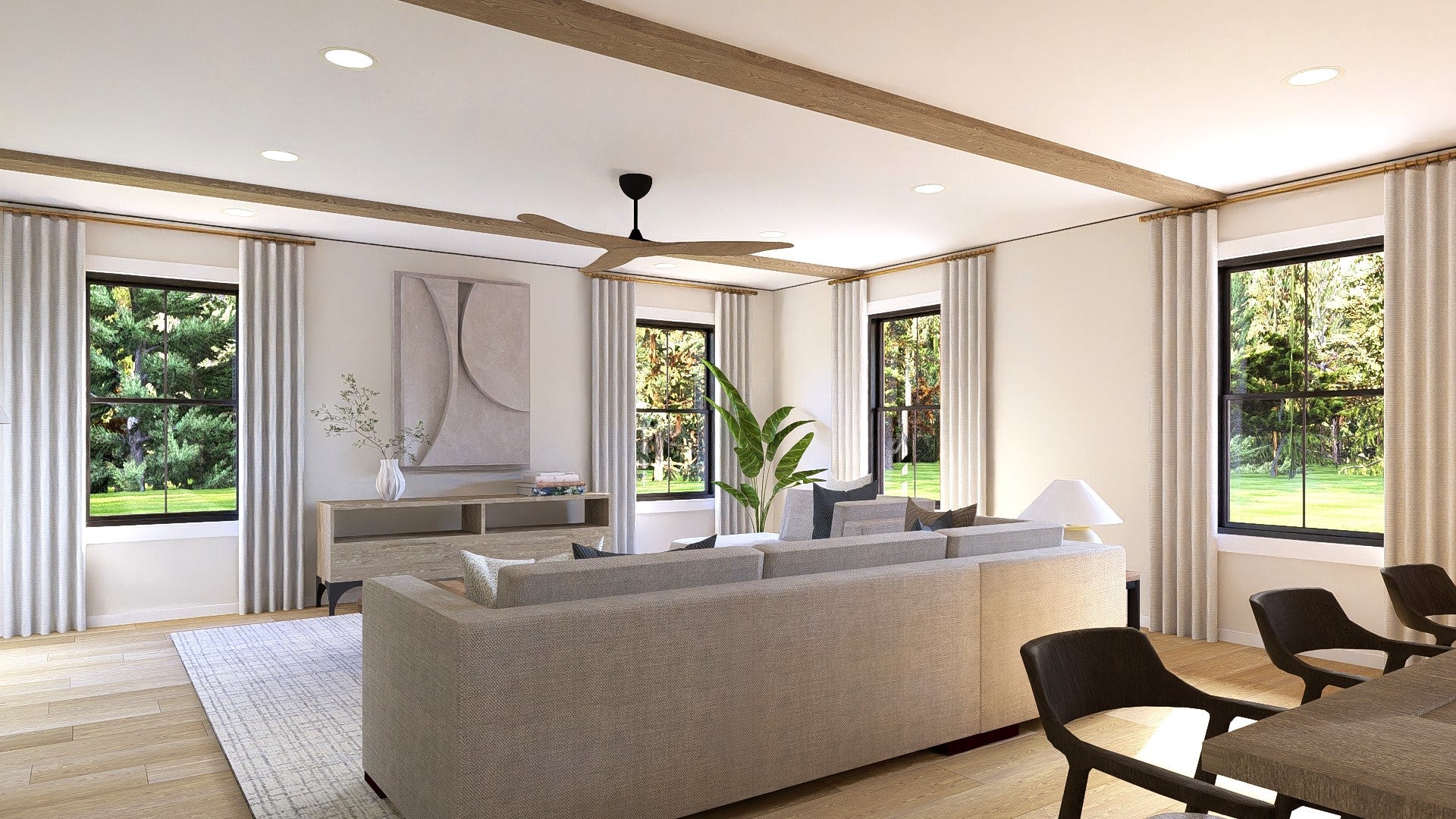 - A 581-square-foot garage provides space for two vehicles and connects directly to the mudroom—streamlining entry, storage, and daily transitions.