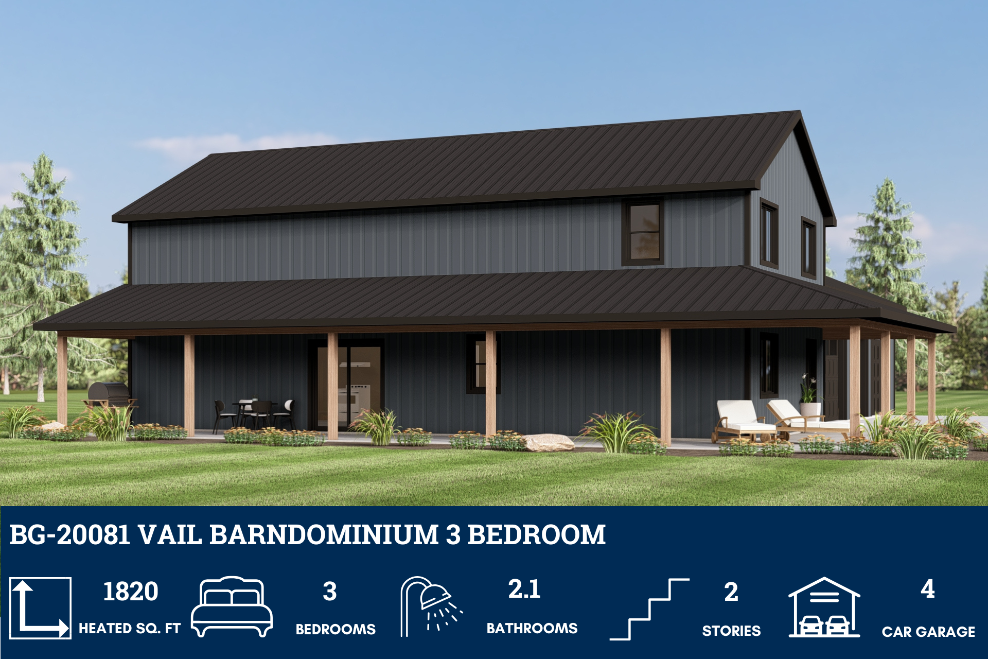 For more barndominium floor plans, check out our complete collection of 3-bedroom barndominium floor plans.