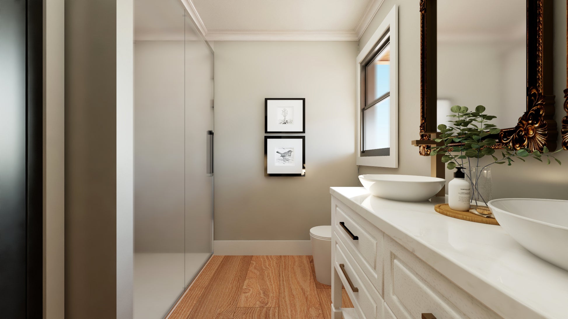 - The mudroom connects the garage to the main living area and includes a built-in bench and direct access to the pantry—streamlining daily transitions and household flow.