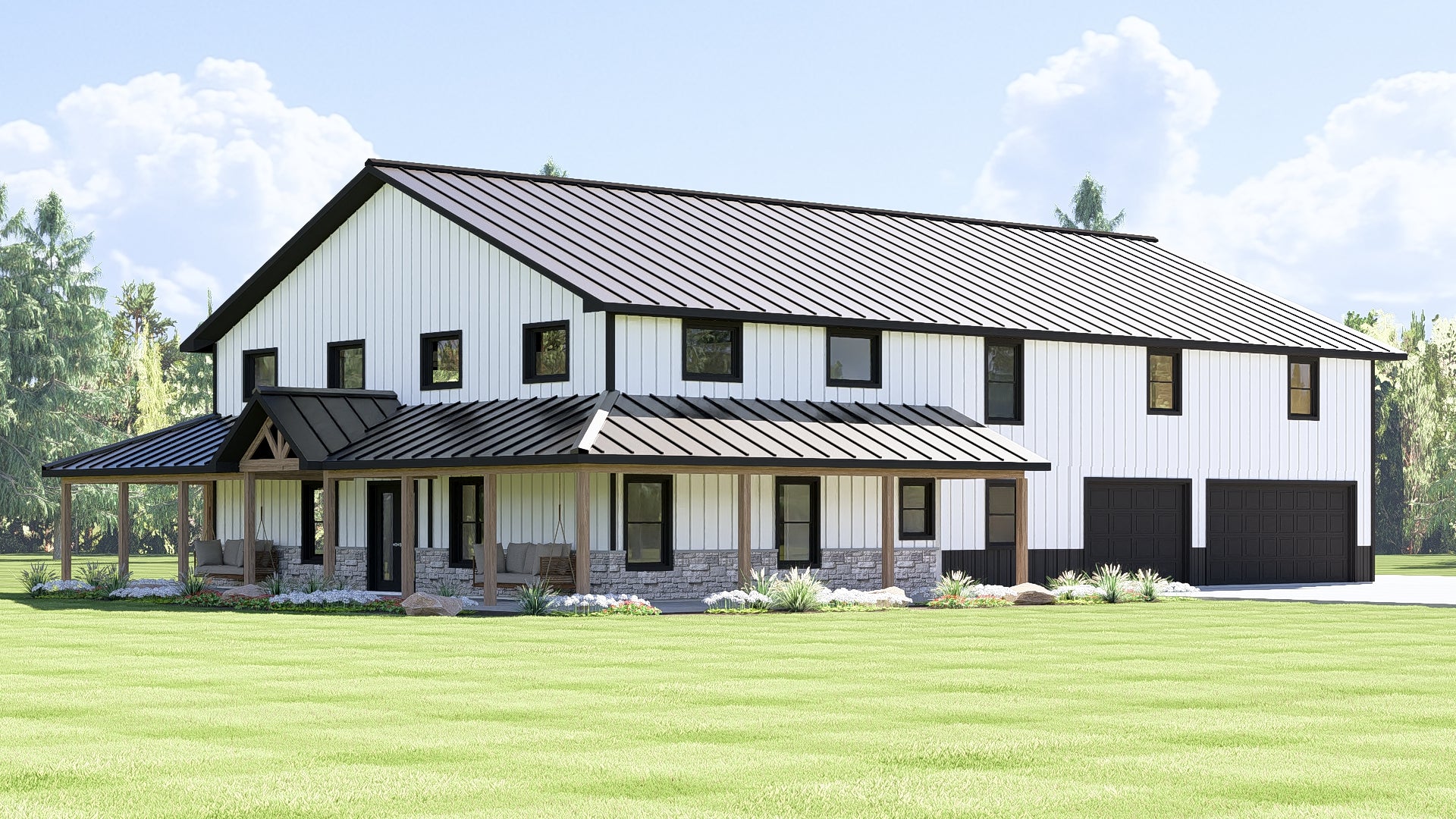 - Covered porches extend across the front and rear of the home—creating shaded outdoor zones for lounging, entertaining, or quiet moments in the open air.