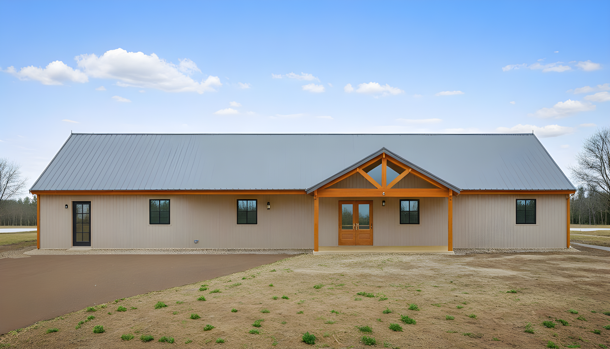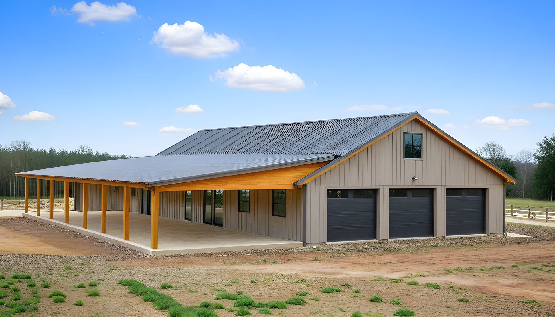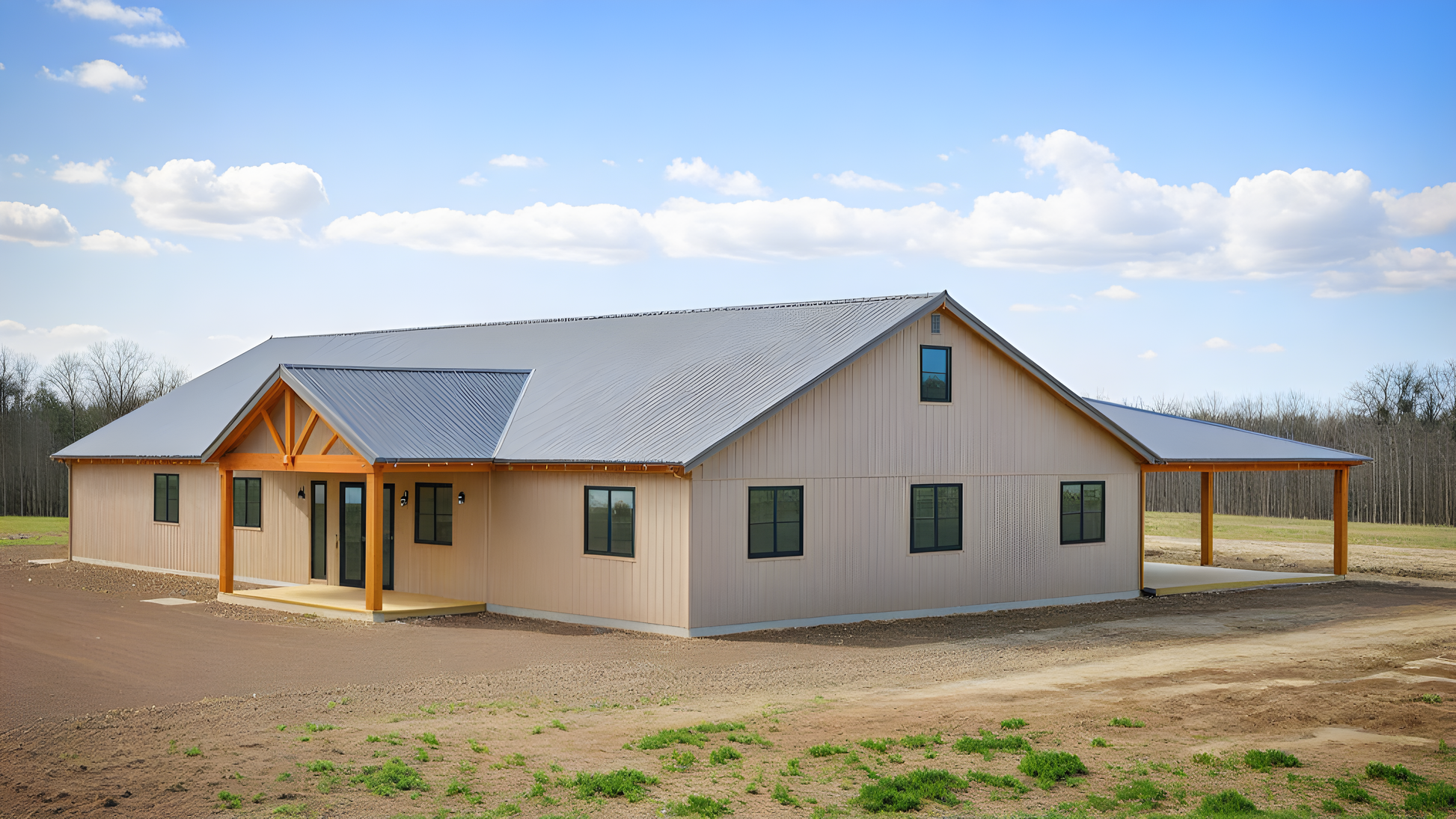 - This spacious barndominium kit masterfully combines a comfortable home with a large, integrated workshop or garage.
