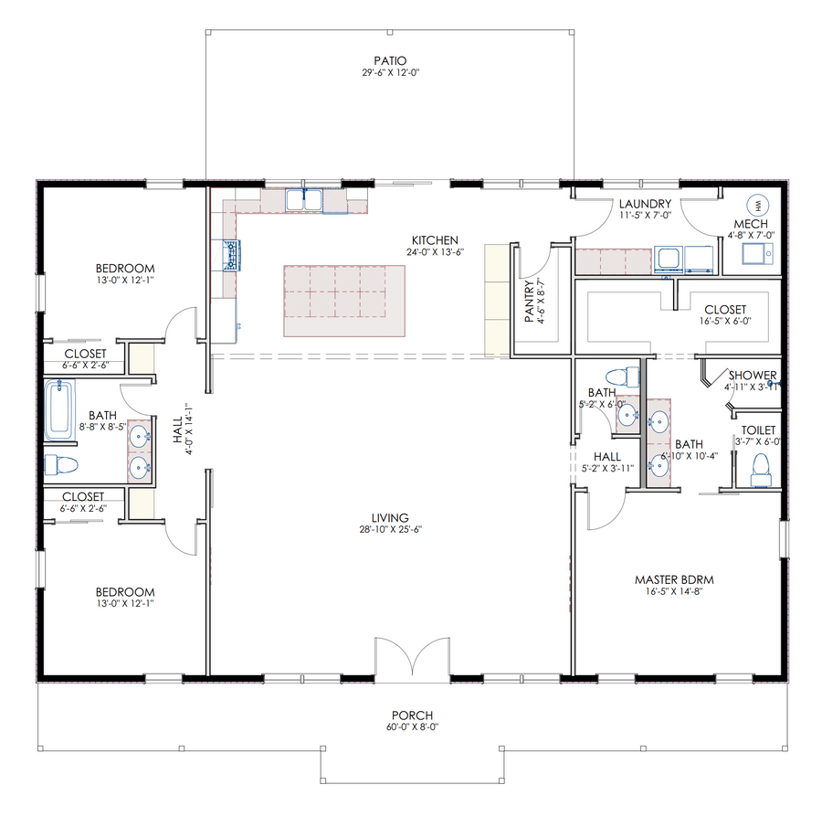 For more barndominium floor plans, check out our complete collection of 3-bedroom barndominium floor plans.