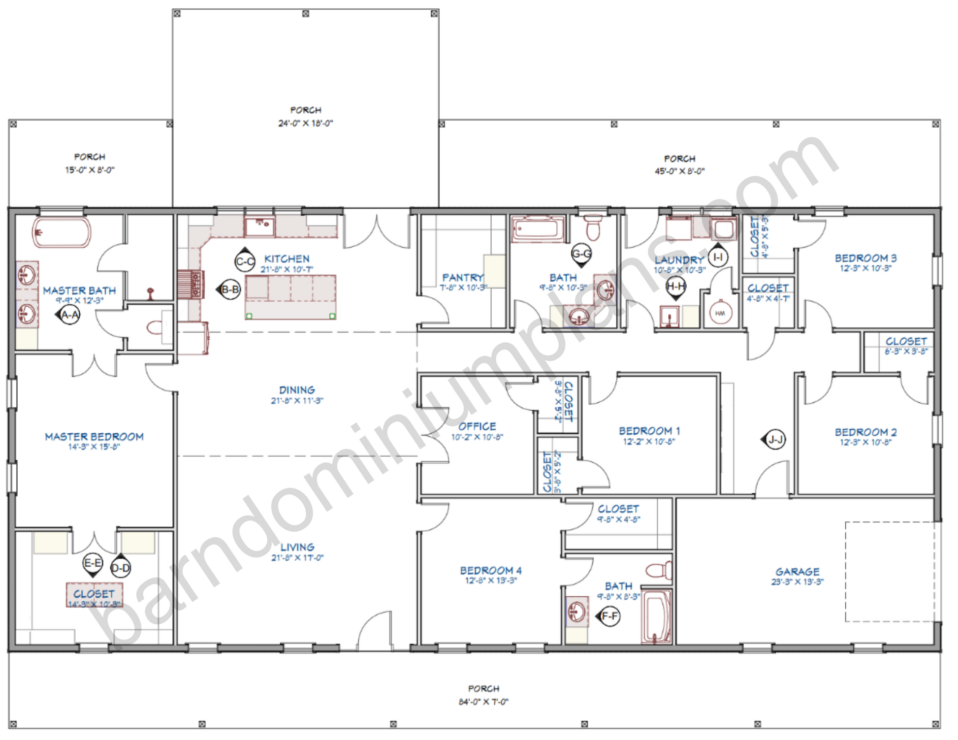 For more barndominium floor plans, check out our complete collection of 5 bedroom barndominium floor plans.