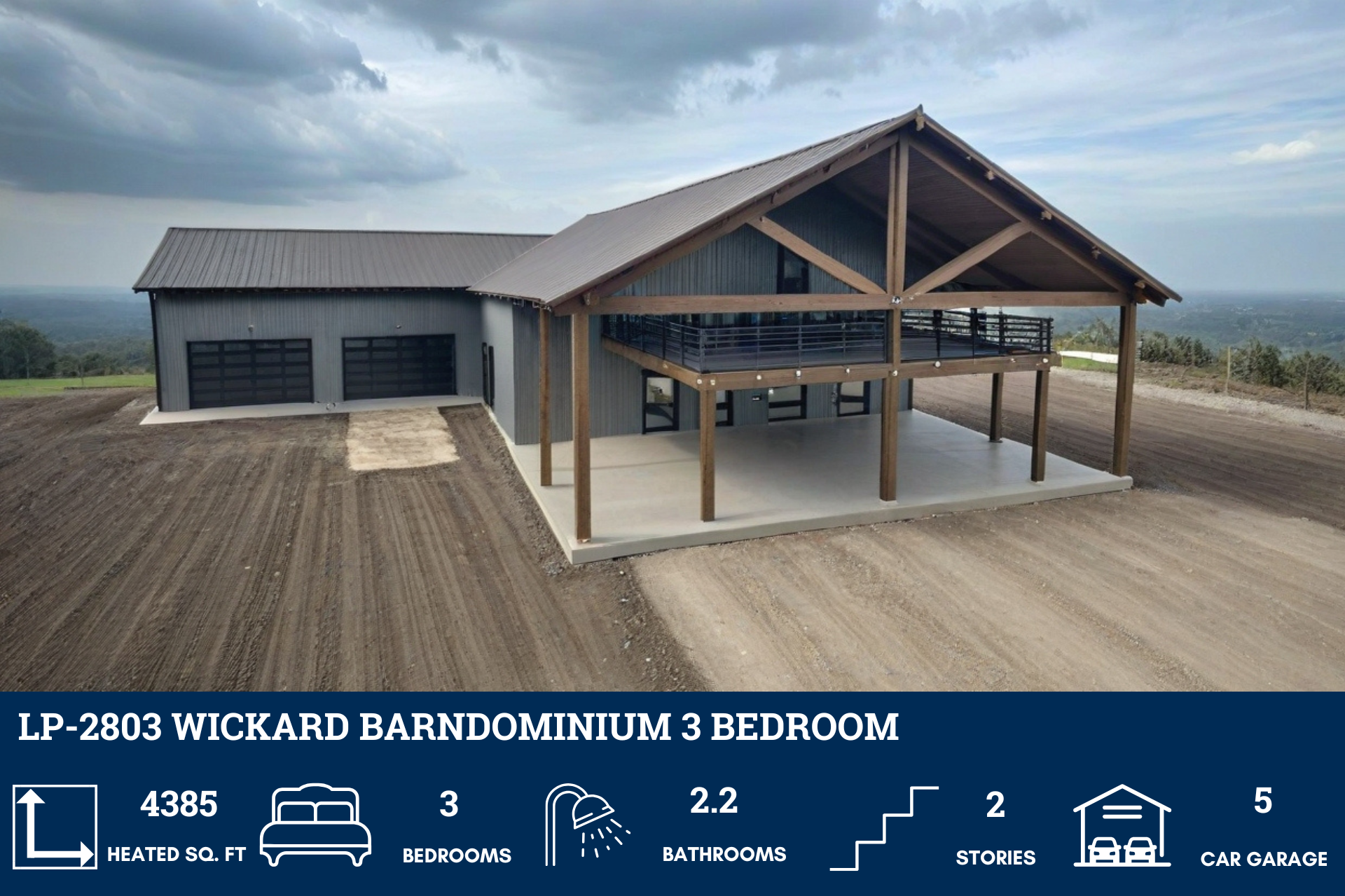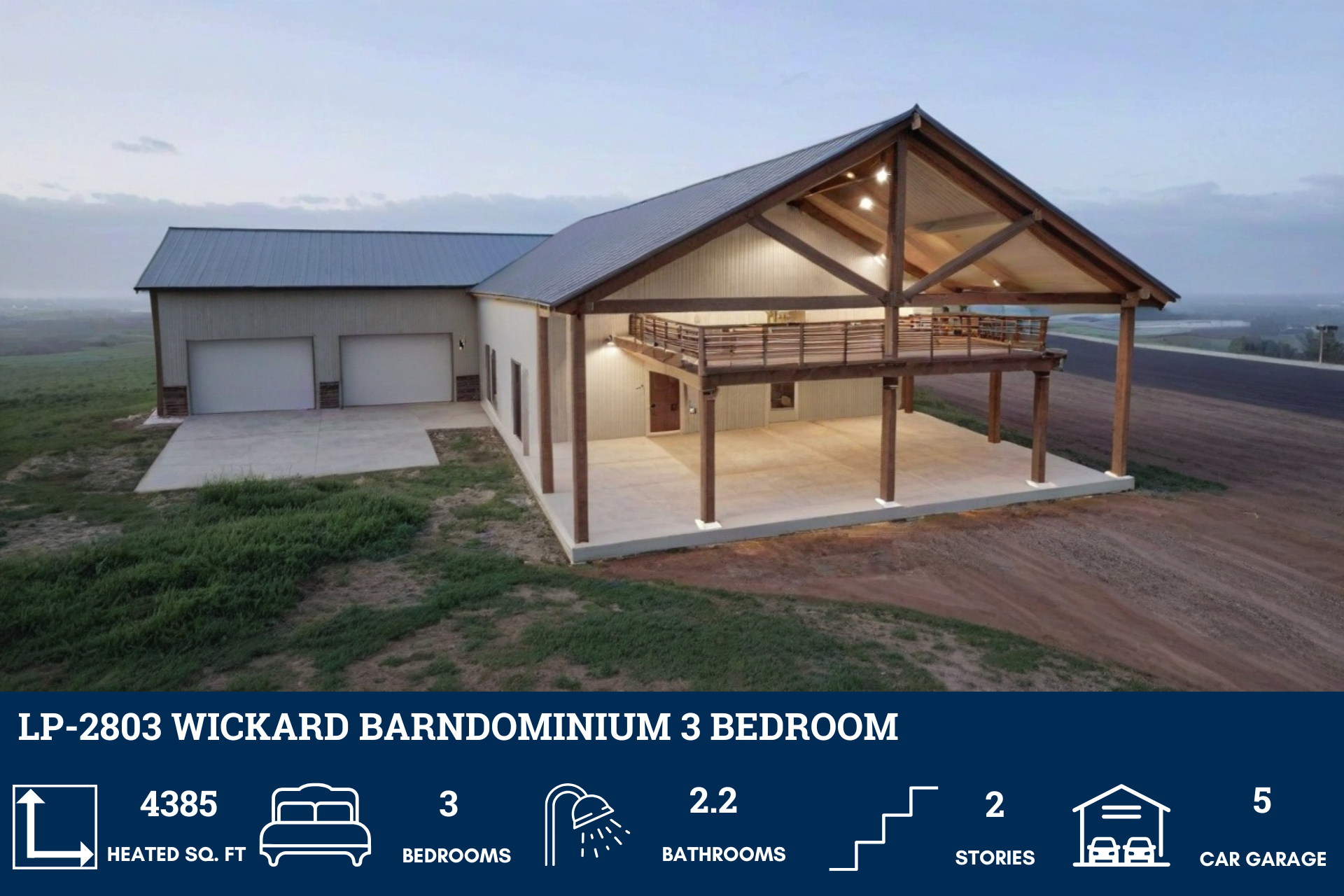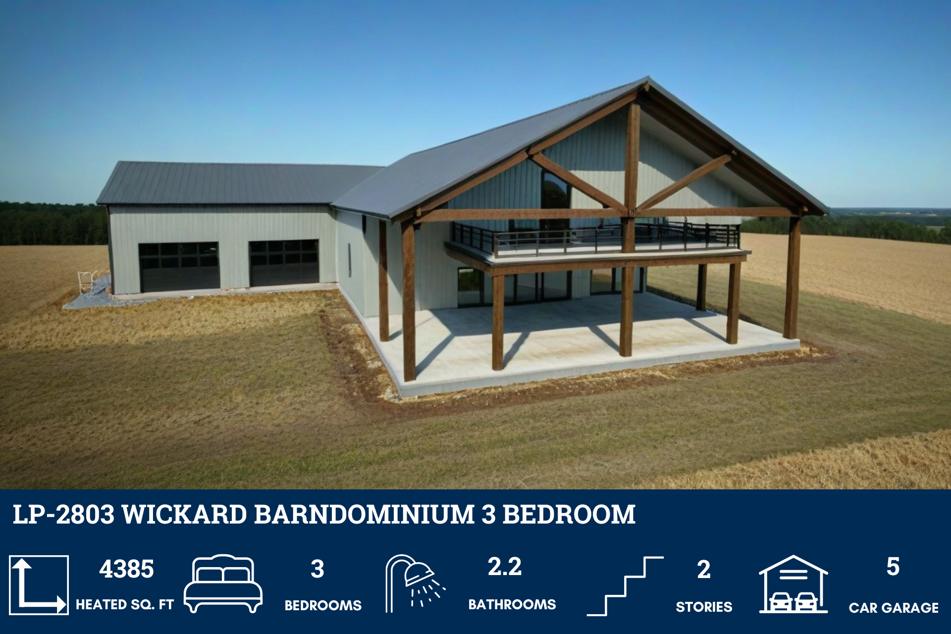 - The Wickard barndominium house plan is 4385 heated square feet and features 3 bedrooms, 2 full bathrooms, and 2 half bathrooms.