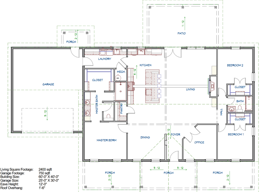 Garage: 750 SF Porches/patio: 1,035 SF Total unheated: 1,785 SF