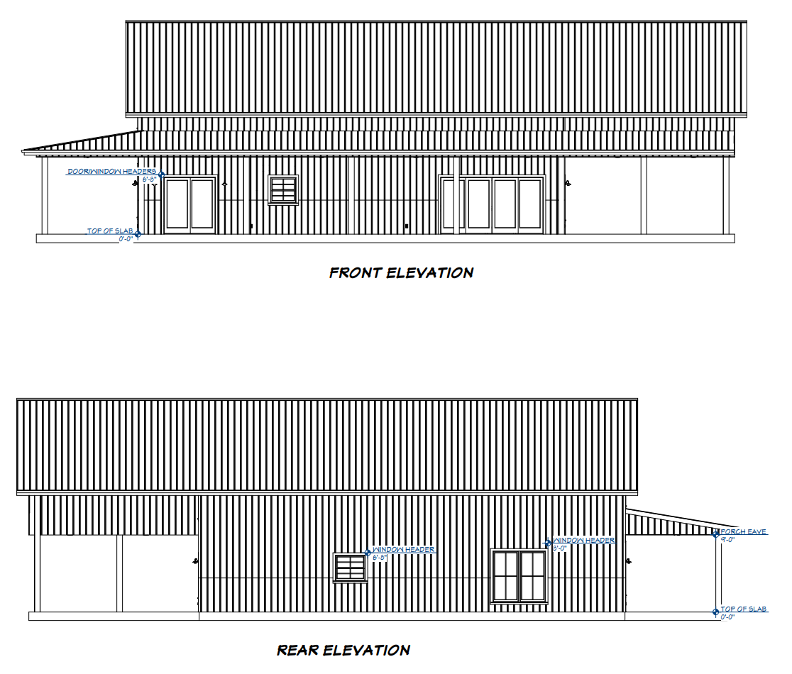 4 Elevations – Front, Back, Both Sides