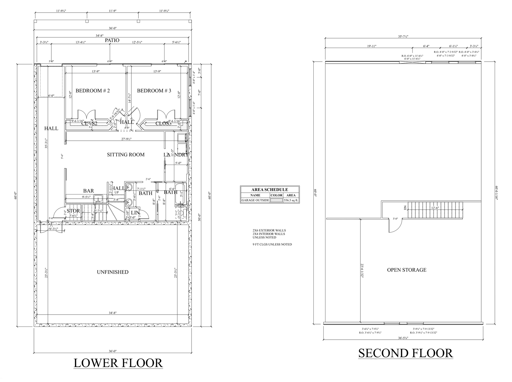- 34x36 living space dimension
