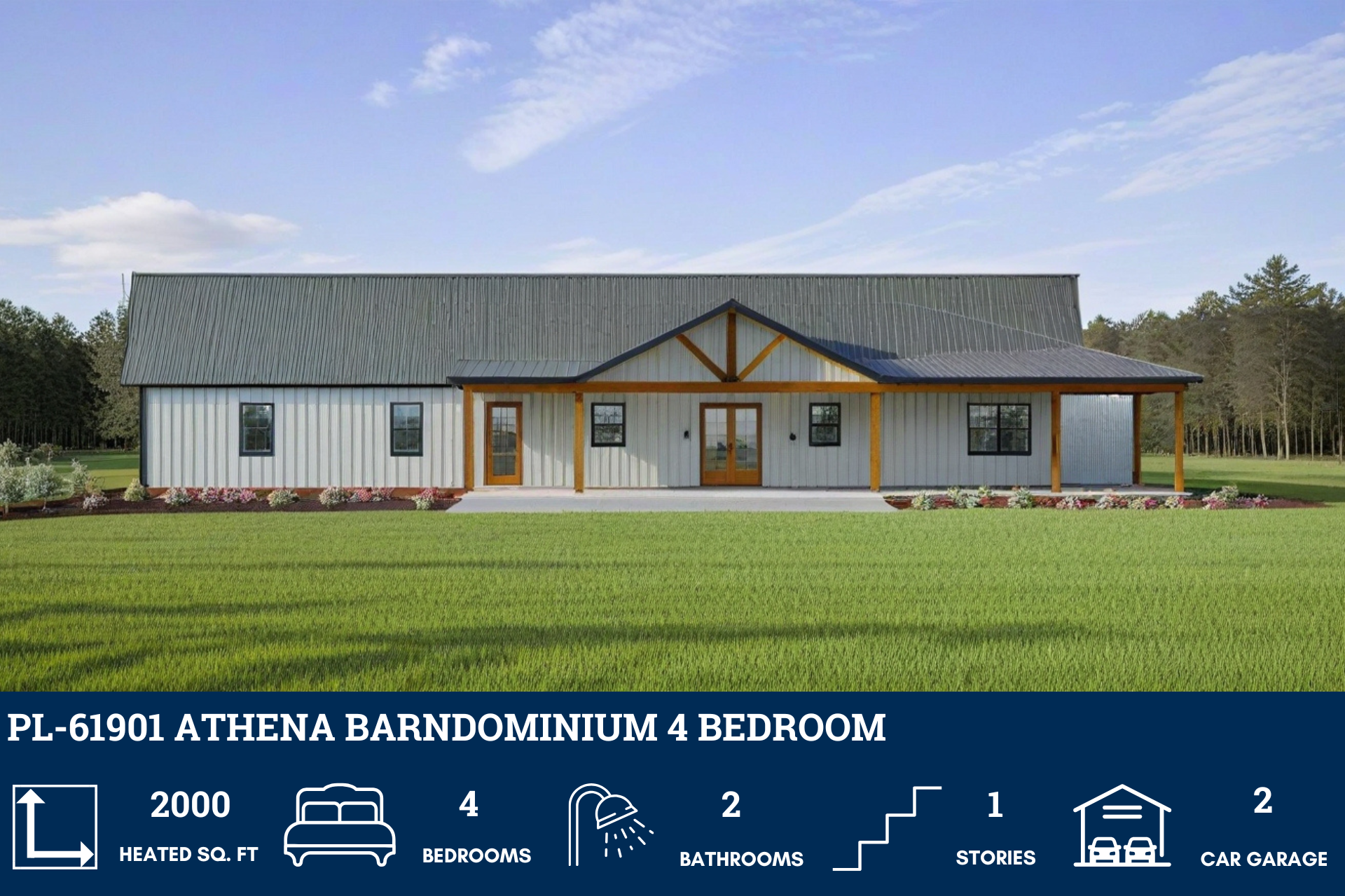 For more barndominium floor plans, check out our complete collection of 4-bedroom barndominium floor plans.