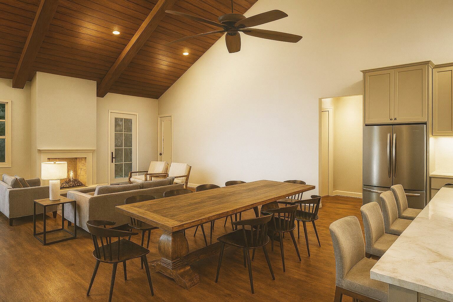 - The single-story, open-concept layout ensures ease of accessibility and mobility, allowing for easy flow between the living, dining, and kitchen areas and a seamless living experience without the need for stairs.
