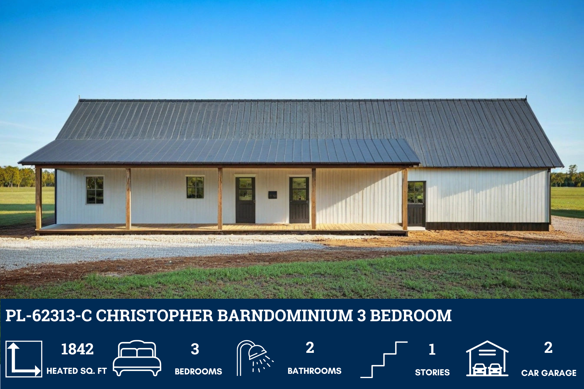 For more barndominium floor plans, check out our complete collection of 3 bedroom barndominium floor plans.