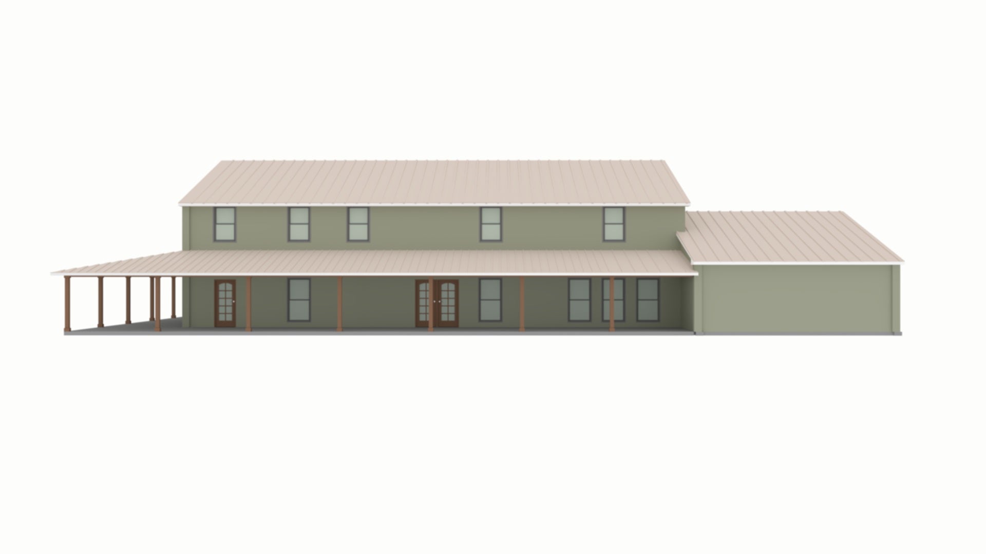 - Full-perimeter porch offers shaded outdoor living, breezy transitions, and architectural charm from every angle.