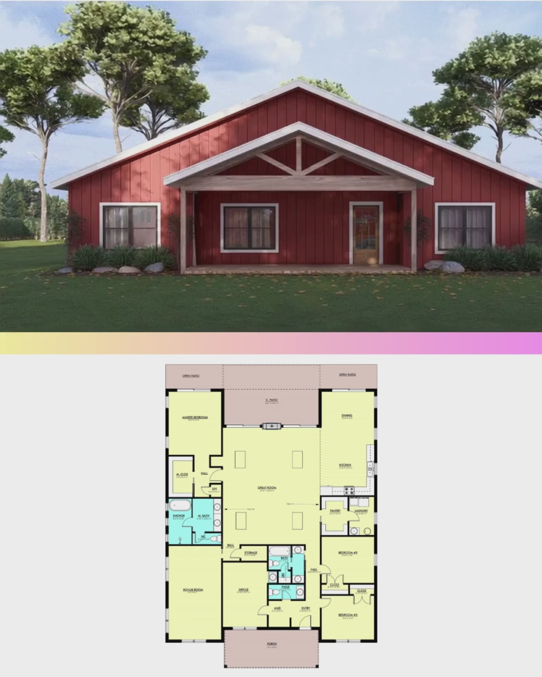 For more barndominium floor plans, check out our complete collection of 3-bedroom barndominium floor plans.