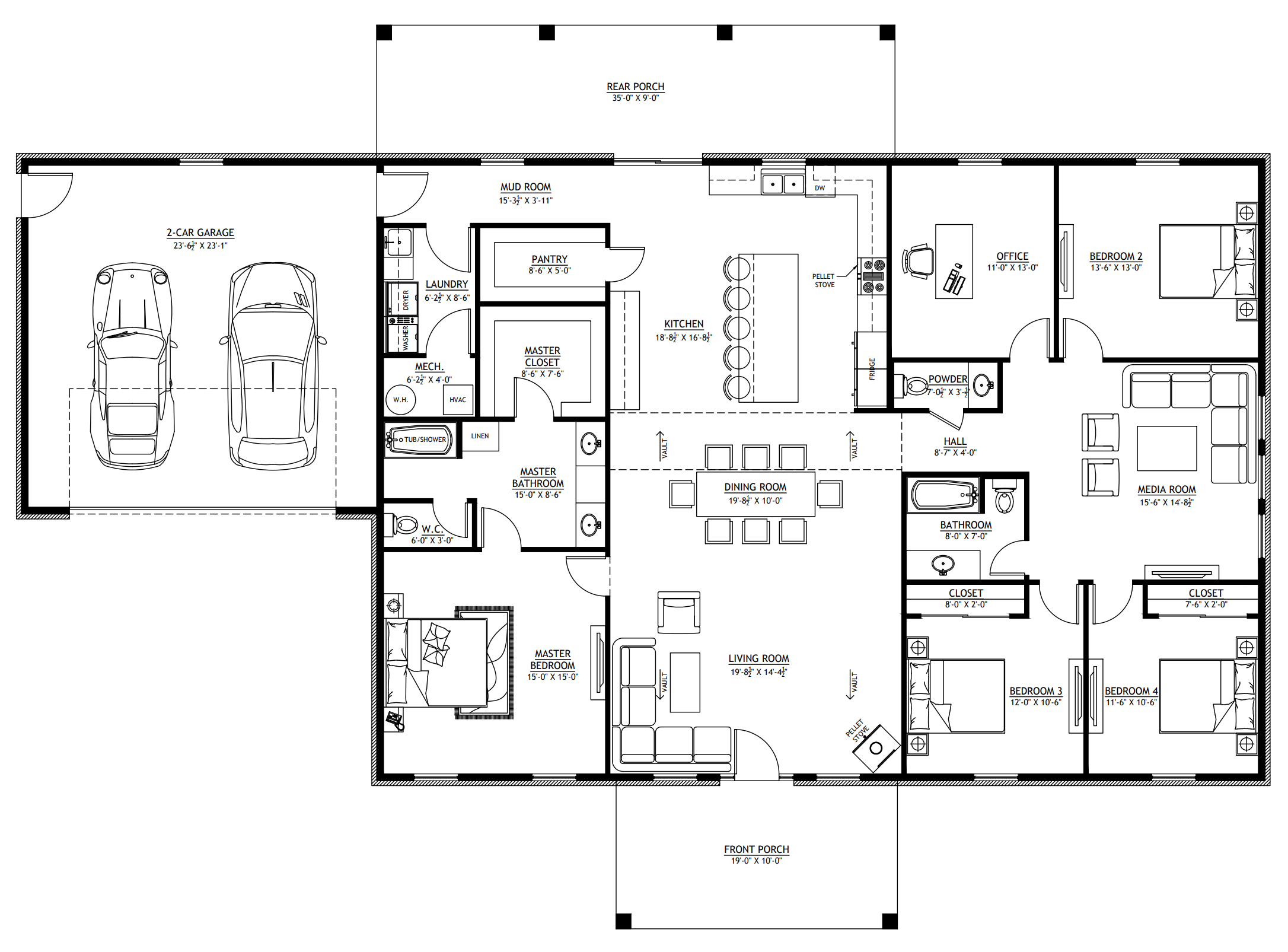 For more barndominium floor plans, check out our complete collection of 4 bedroom barndominium floor plans.