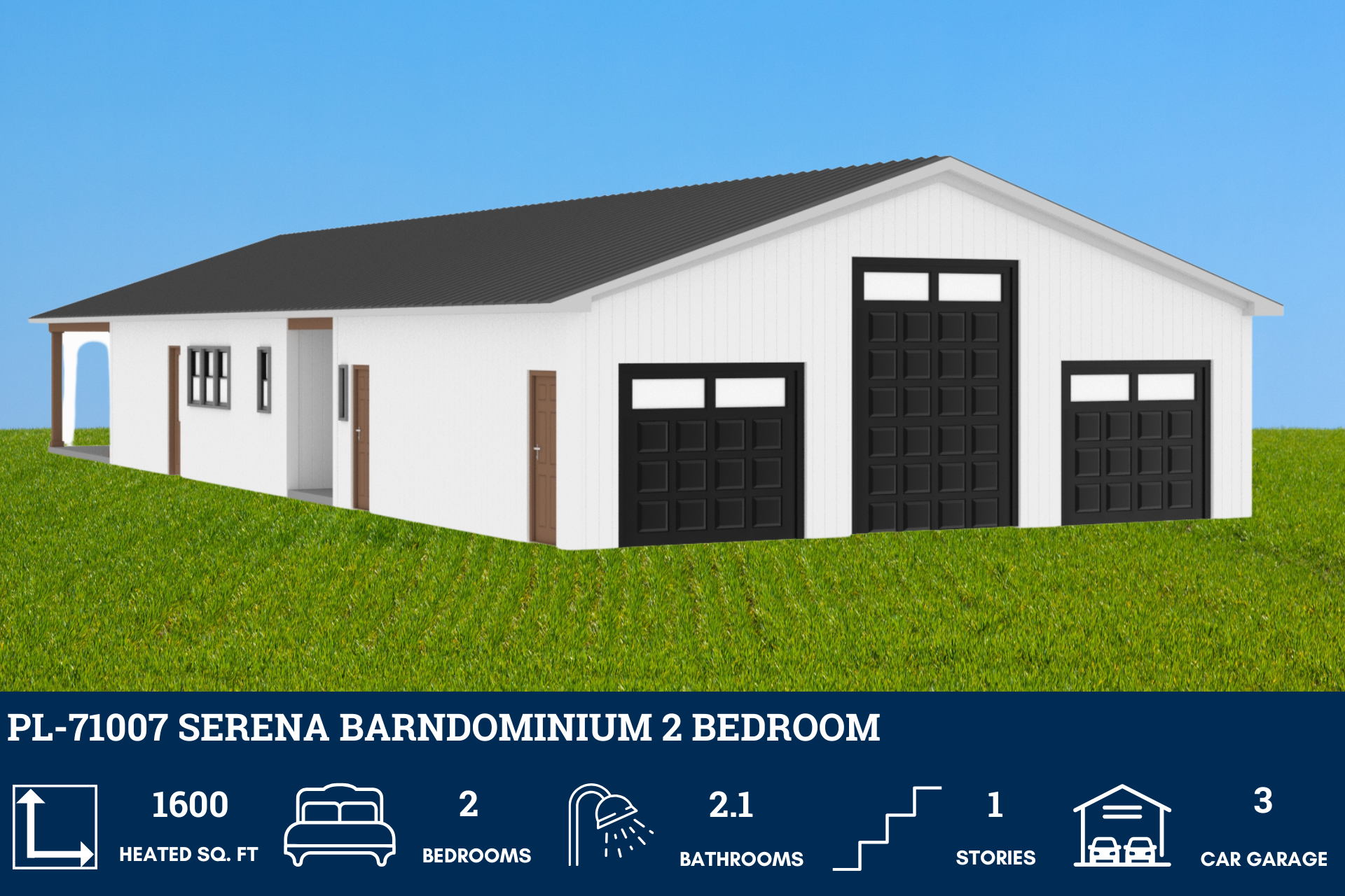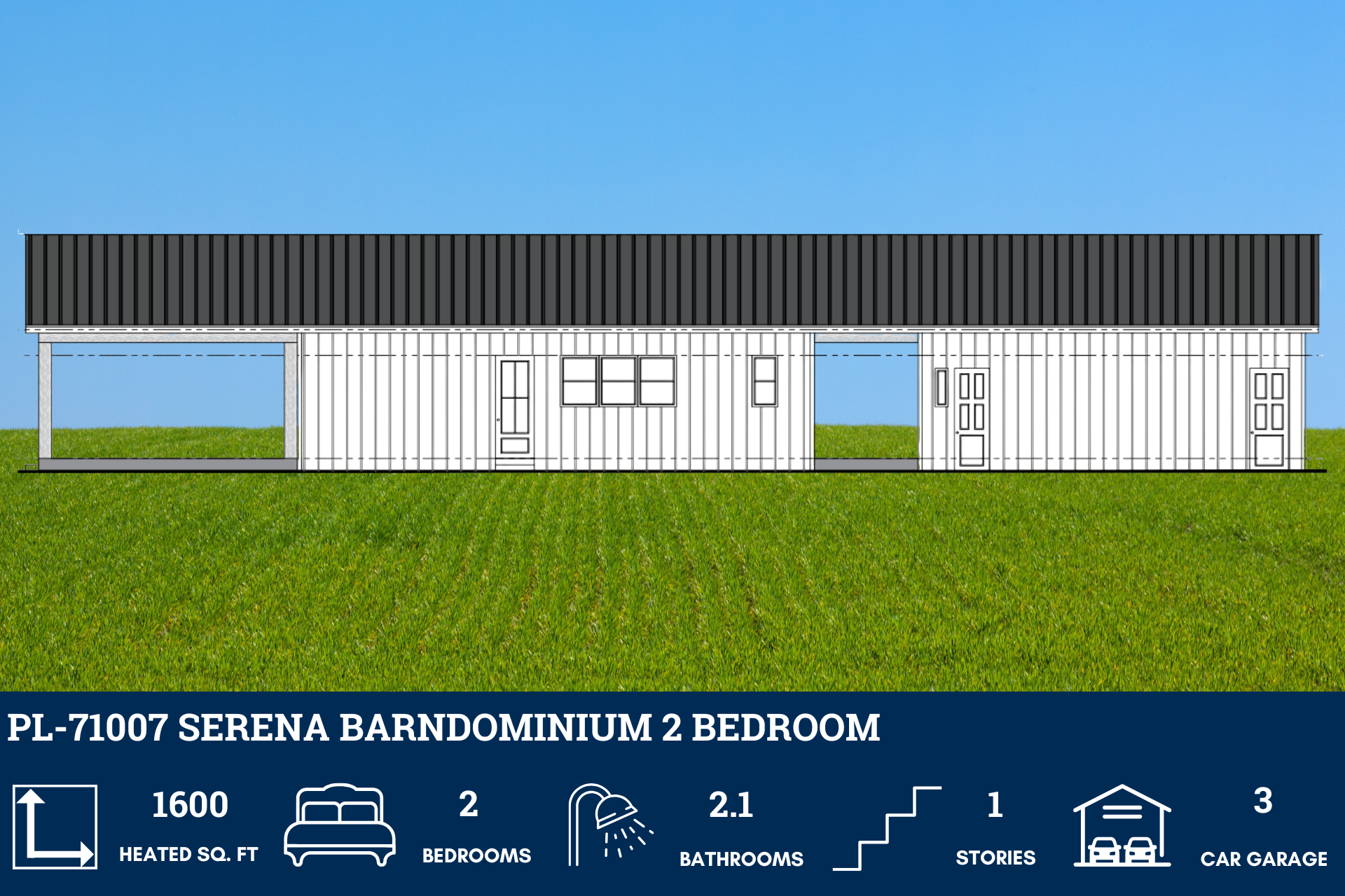 For more barndominium floor plans, check out our complete collection of 2-bedroom barndominium floor plans.