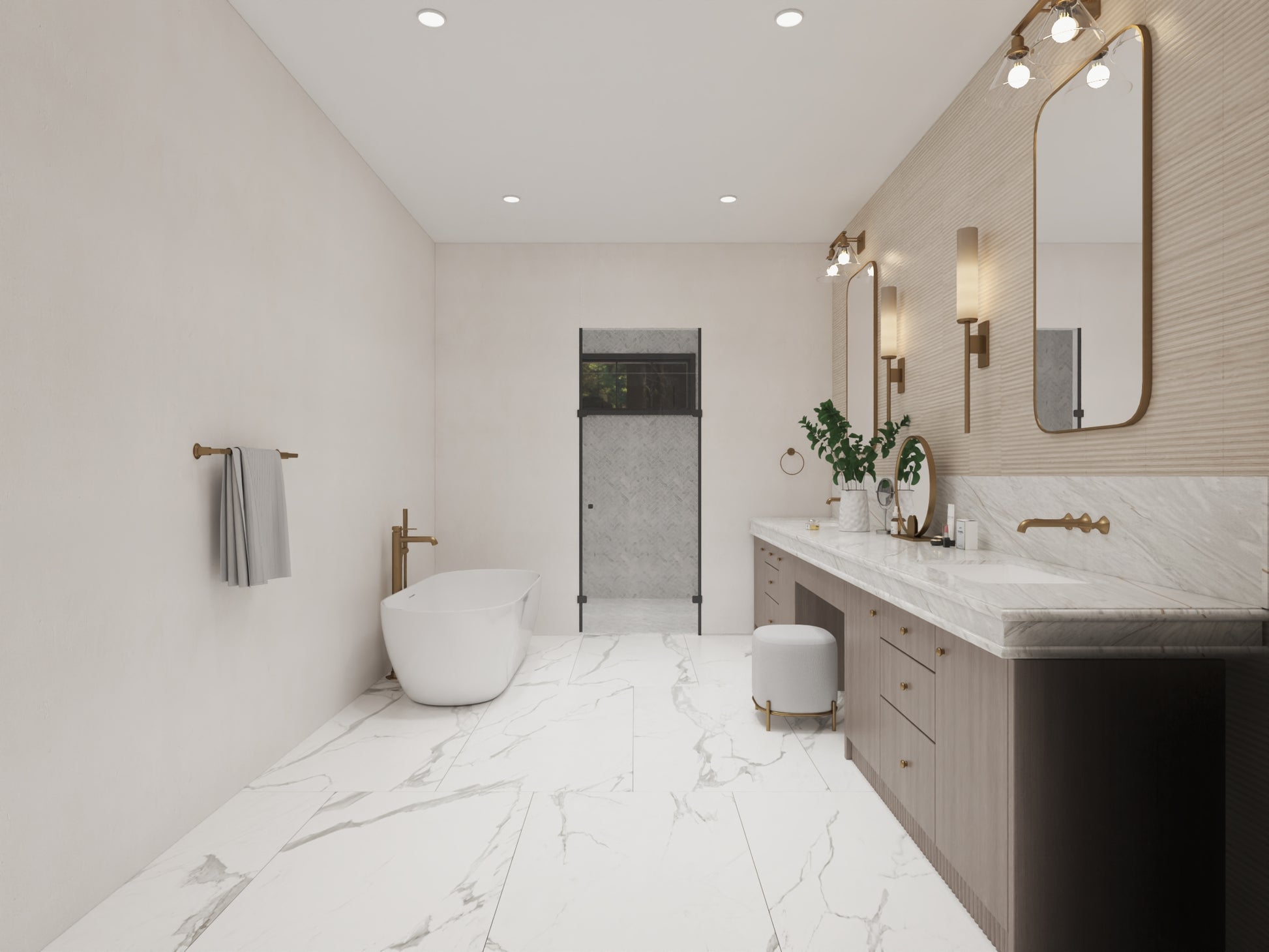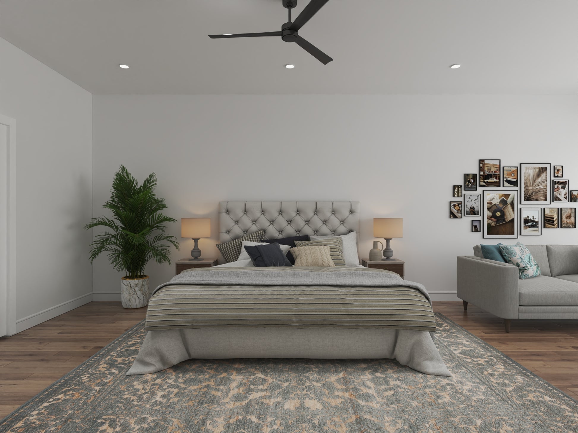 - The master bedroom is on the right side, offering privacy with its own ensuite bathroom while the 3 bedrooms are on the left side, near the living room, a setup ideal for guests or family members desiring more secluded space.