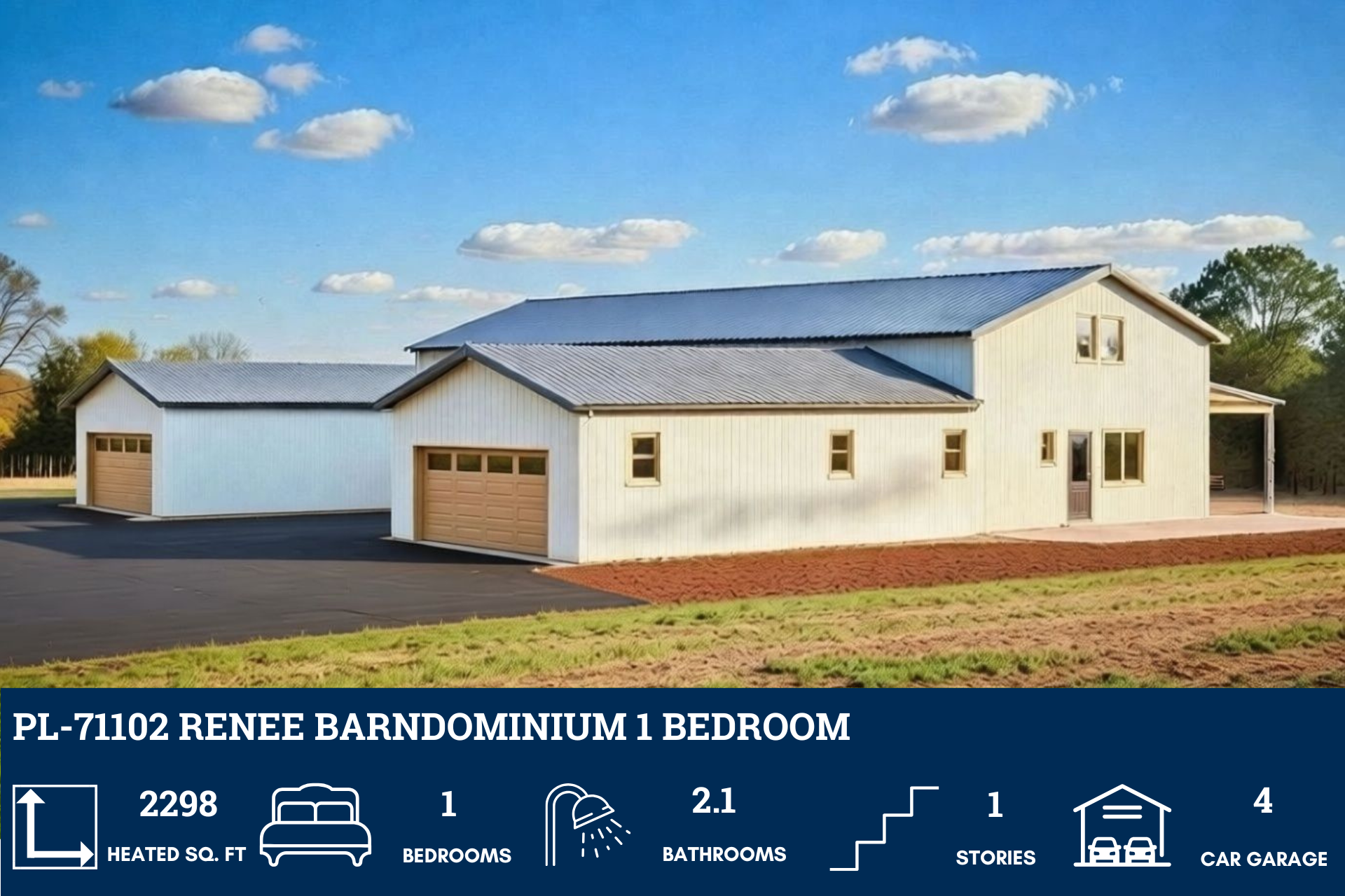 For more barndominium floor plans, check out our complete collection of 2-bedroom barndominium floor plans.