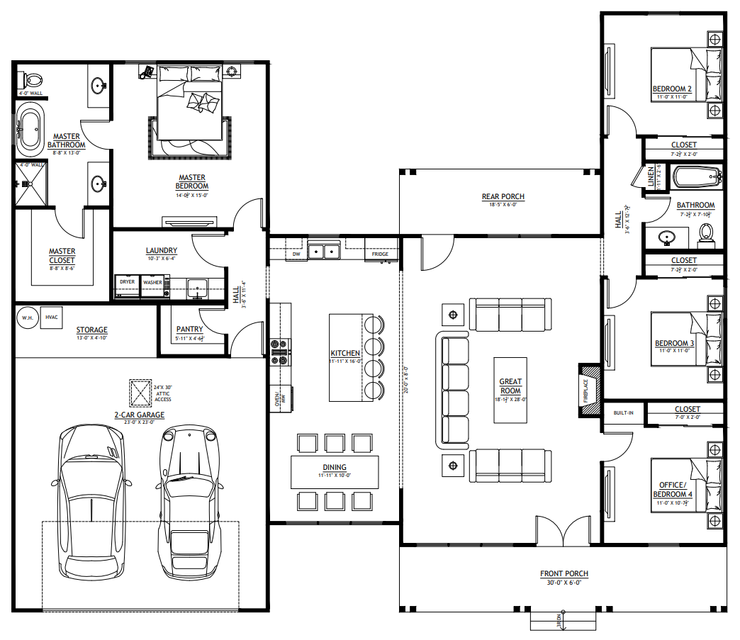 - Dual porches invite outdoor living from sunrise to sunset. Welcome guests out front, unwind out back, and enjoy shaded comfort in every season.