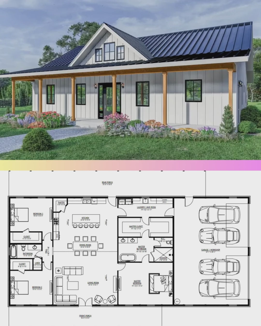 For more barndominium floor plans, check out our complete collection of 3-bedroom barndominium floor plans.