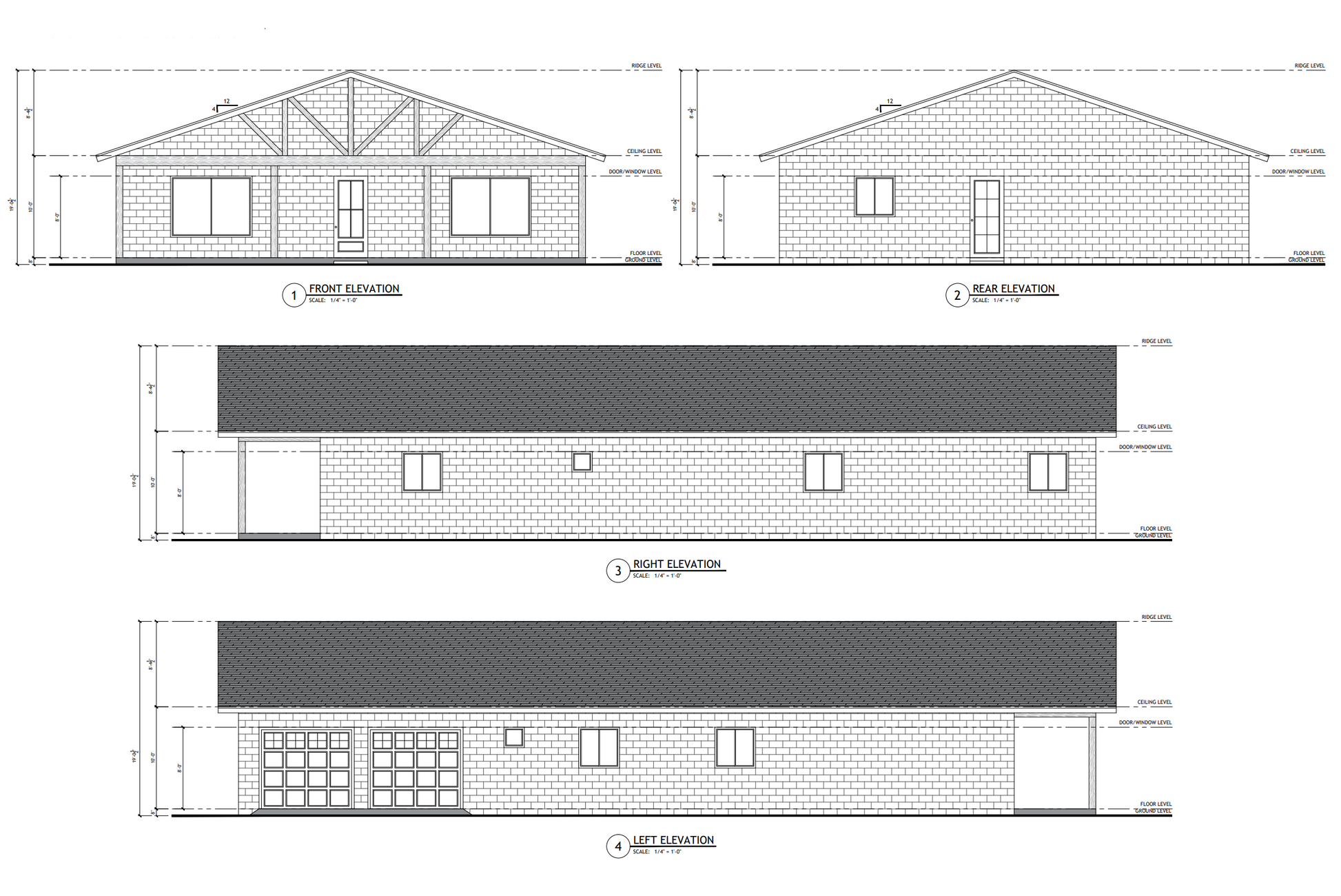 4 Elevations – Front, Back, Both Sides